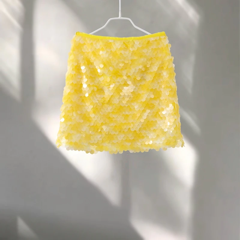 Sexy Sequin Mini Skirt Women Fashion Yellow Party Slim Hip Package Female Skirts 2025 Summer Street Club Bar Shining Lady Skirt