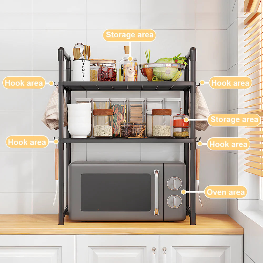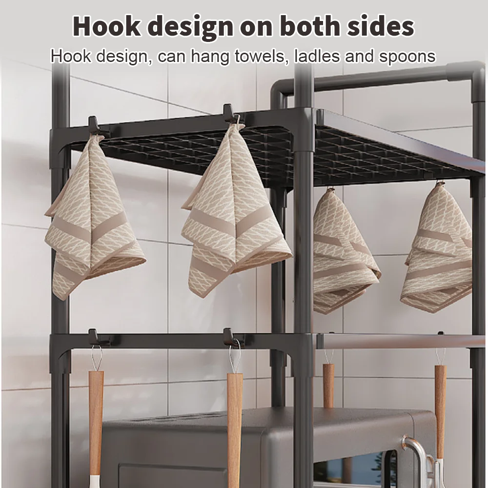 Sturdy Multi-Tier Kitchen Storage Rack with Handles, Durable Organizer with Side Hooks, Metal Frame Rack, Modern Kitchen Rack