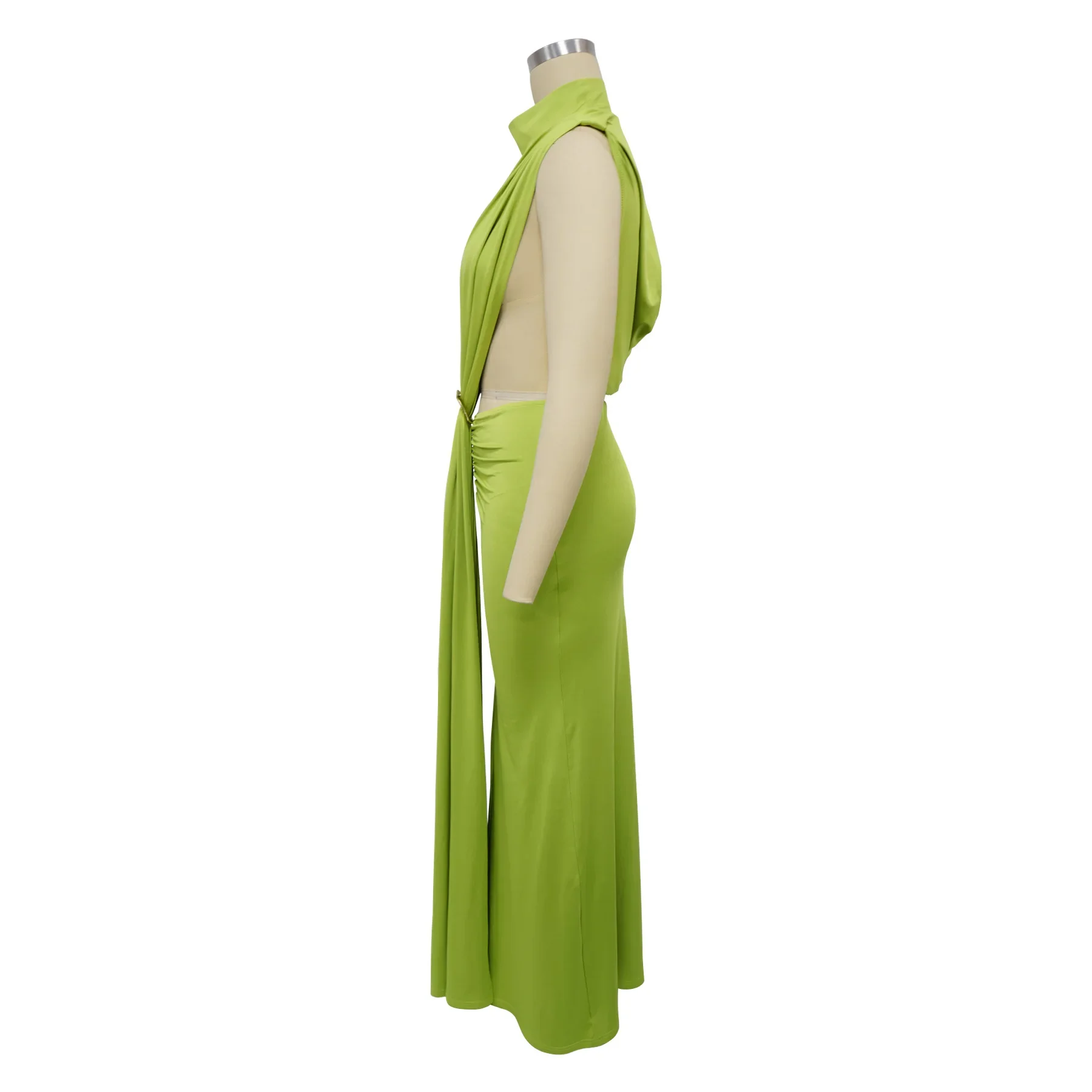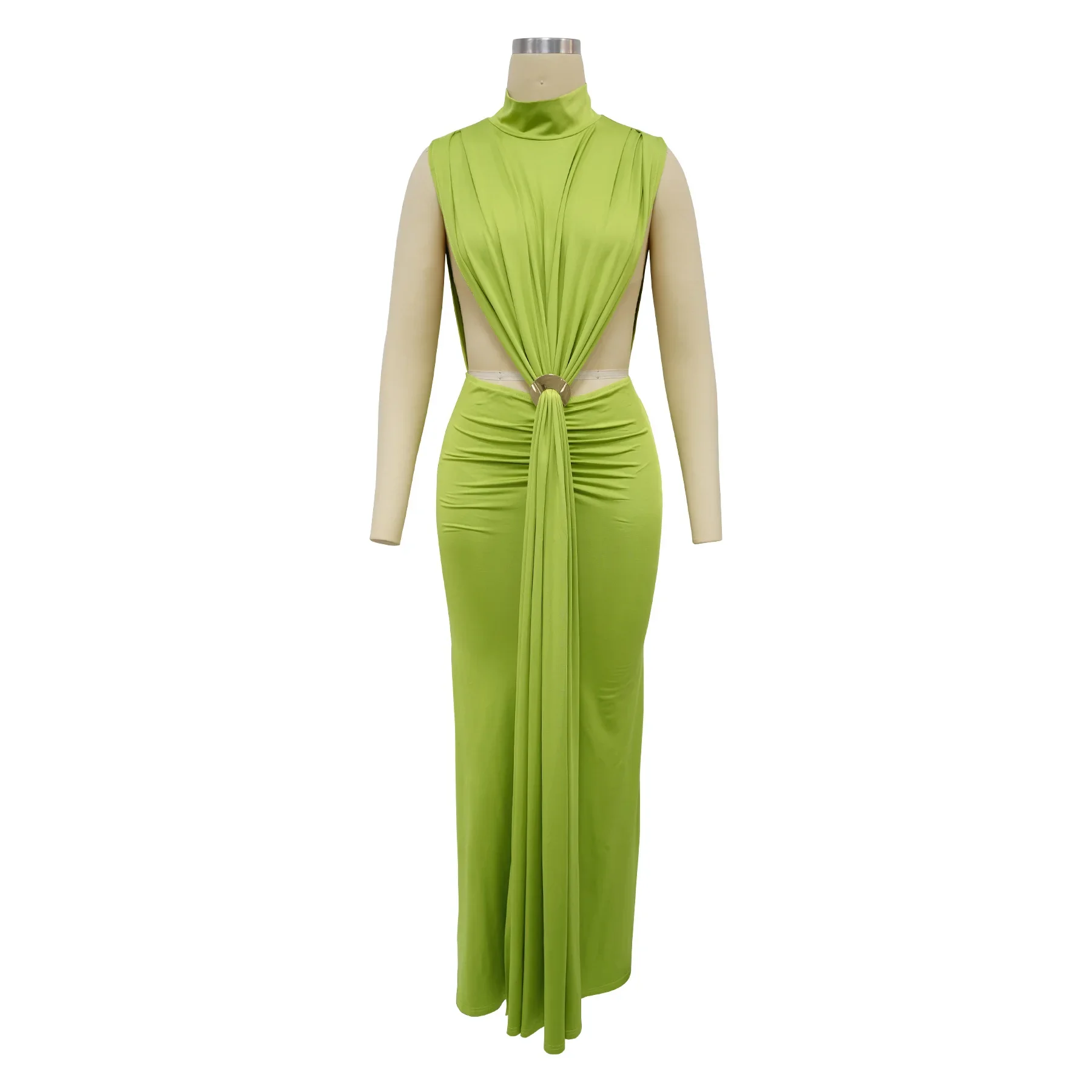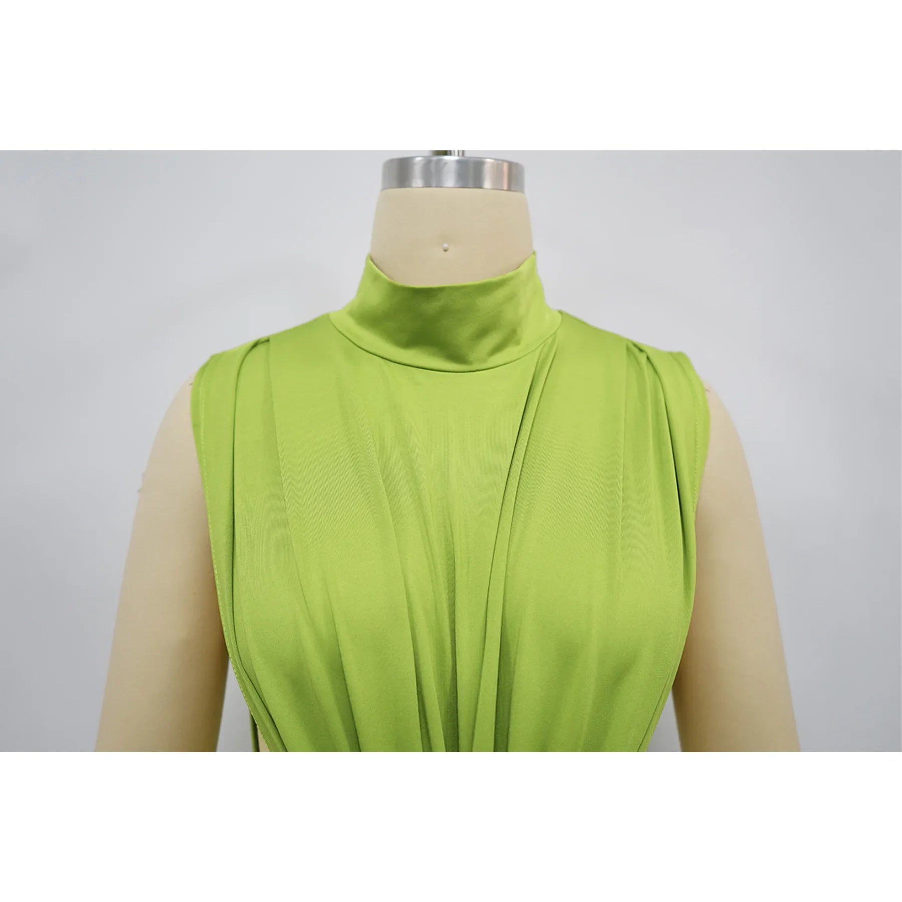 XIZOU Women O-neck High Split Ruched Stacked Bodycon Midi Maxi Dress 2024 Evening Party Club Vestidos Sexy Chic Long Dresses