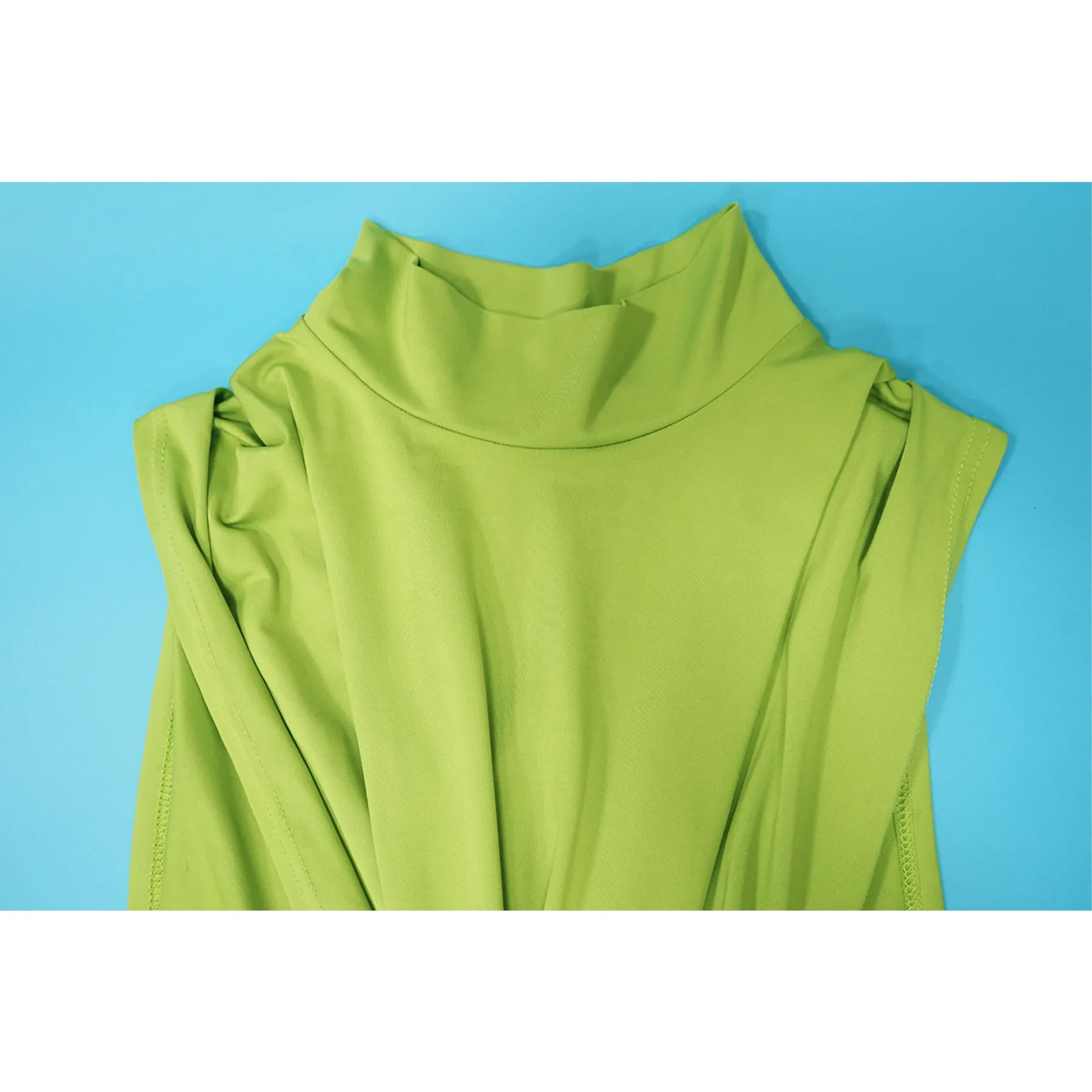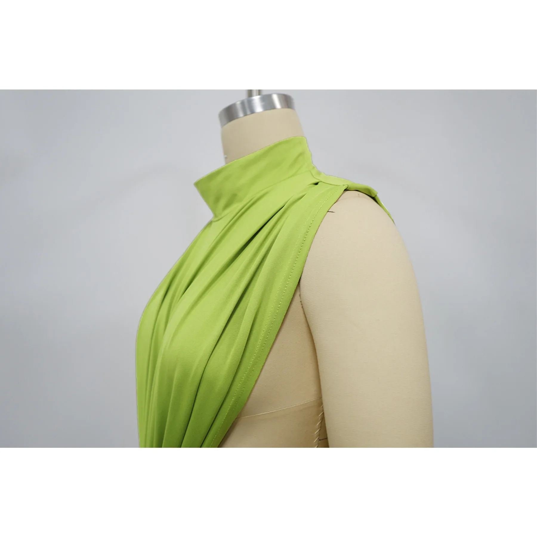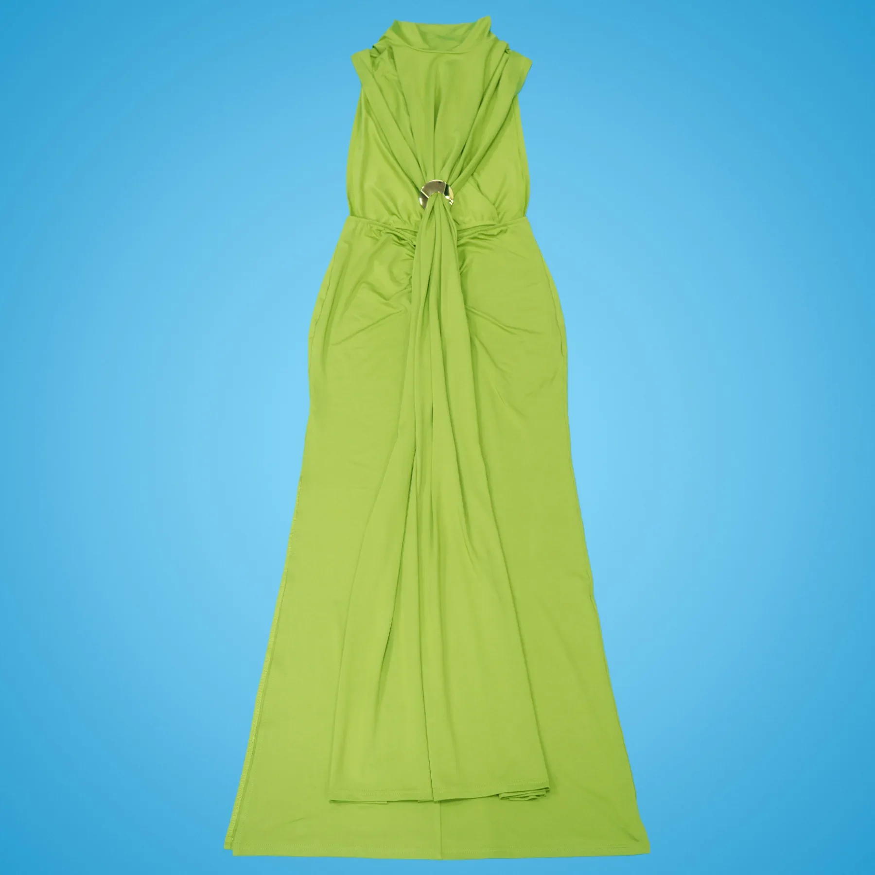 XIZOU Women O-neck High Split Ruched Stacked Bodycon Midi Maxi Dress 2024 Evening Party Club Vestidos Sexy Chic Long Dresses